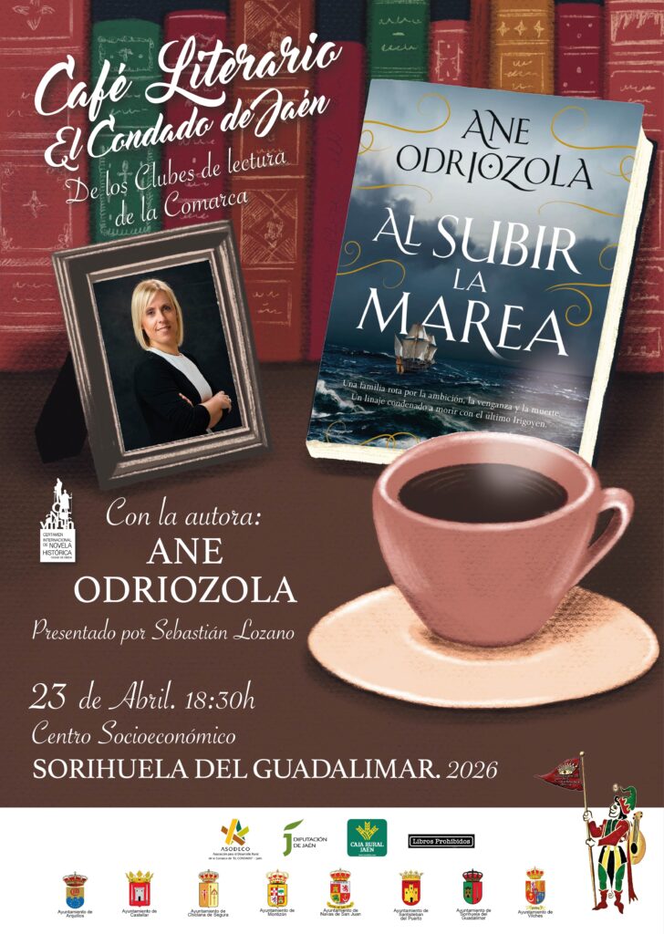 Sorihuela del Guadalimar acogerá el siguiente Café Literario El Condado de Jaén, de los Clubes de Lectura de la Comarca, que tendrá lugar el próximo jueves 23 de abril de 2026, en el Centro Socioeconómico del municipio, a las 18,30 horas, donde la escritora Ane Odriozola presentará su novela "Al subir la marea". Evento cultural enmarcado en el Plan de Animación y Fomento a la Lectura en el territorio, puesto en marcha por ASODECO y los Ayuntamientos, en el marco del Convenio de Comarcalización Cultural suscrito con el Área de Cultura y Deportes de la Diputación Provincial de Jaén.